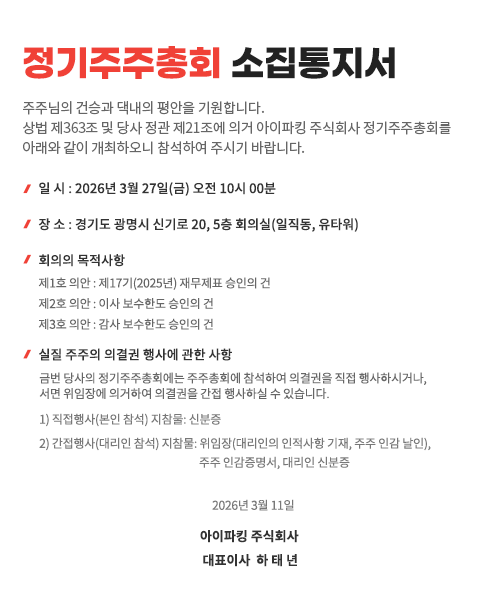 하기와 같이 자사의 임시주주총회 기간을 공지해 드리니 확인 바랍니다.